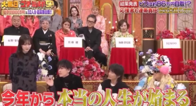 2024年大晦日放送された「史上最大32名×超高額自腹!! ピタリでたら1000万円 大晦日もゴチになります!SP」に、永野芽以&佐藤健が出演。